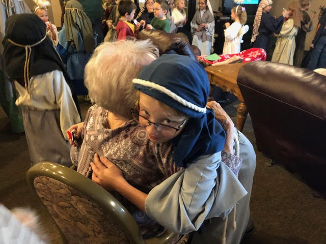 In order to bring His light and love to our community, the students performed their Live Nativity songs and skit for three different retirement homes. It was such a joy to see the excitement on the residents’ faces when the students sang, handed out hugs and cards, and interacted with the people there. We feel that teaching kids to spread the love of Christ can be as simple as saying hello, sharing smiles, and singing songs!